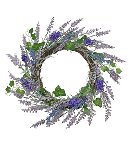 - This artificial wreath is designed with lots of delicate lavender flowers and leaves.