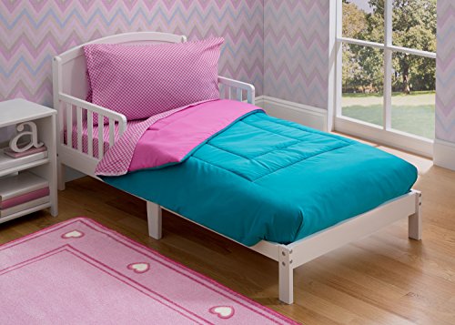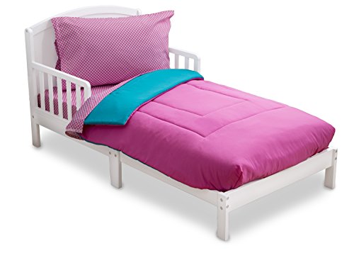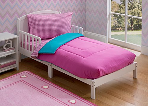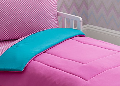 Delta Children Reversible Girls Toddler 4 Piece Bedding Set (Fitted Sheet, Flat Top Sheet w/ Elastic bottom, Fitted Comforter w/ Elastic bottom, Standard...