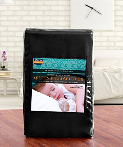Studio : Utopia Bedding Publisher : Utopia Bedding Product Description Have a better sleep tonight and every night with Bamboo Pillow Covers.Softer than cotton, these pillow covers are strong as silk and extremely durable. It also has heat dissipating properties that keep the pillow cool all night long. Built with a close network of 300 thread count, 100% Bamboo Sateen Pillow Covers are extremely soft and smooth. Its luxurious finish and quality will make you buy this for all the rooms in your home. High-quality Zip and double-hemmed stitching provide durable construction and protection that will last long to give you a good night's sleep every time. So add layer of luxury along with comfort with Utopia Bedding's Bamboo Sateen Zippered Pillow Covers. ? Luxuriously Soft Texture ? Heat Dissipating Properties ? Hypoallergenic: Resists Molds, Allergens And Dust Mites ? Machine Washable