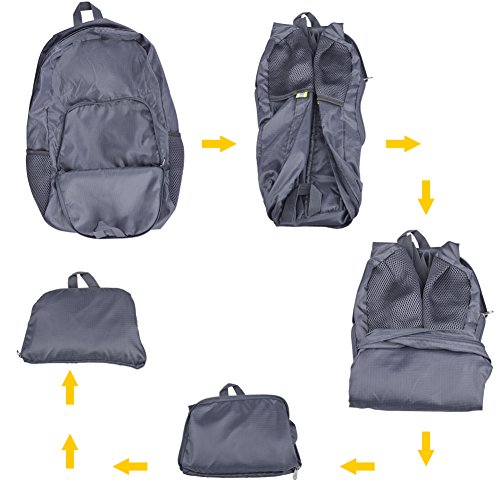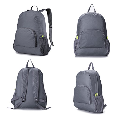 The packable backpack is made of high quality water and tear resistant nylon material, with abrasion resistant SBS metal zipper and reinforced more than 14 places with rope process. Like a notebook size after being folded, easy to carry,convenient and practical. It fits into an ultra-compact pouch, so you can easily pack it in your suitcase for use at their destination as an extra bag for the trip. This compact, lightweight backpack is the perfect companion when you are out and about. It will be a fantastic necessity for no matter outdoor sports or leisure activities in or out of the city.Perfect for day trips,vacation,travel,day hikes,school,camping and shopping,etc.