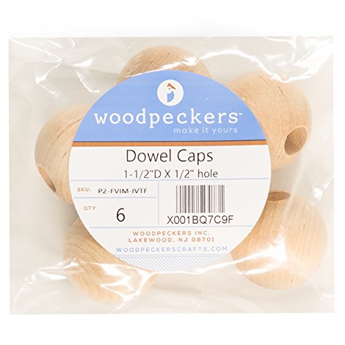 Wood Dowel Caps - 1-1/2" Diameter With 1/2" hole - Dowel Rod Caps For 1/2 Inch Dowel Rods - For Crafts and DIY’ers - Pack of 6 - Woodpeckers Crafts