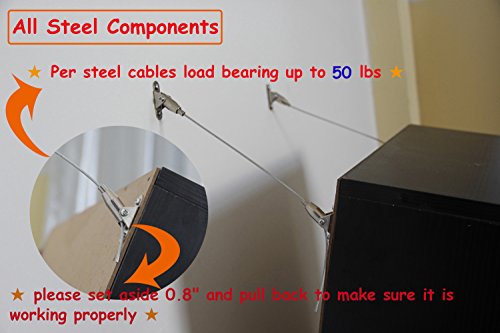 HEAVY DUTY STEEL CABLES - These furniture anti-tip kit are all steel and high grade galvanized steel cables load bearing up to 50 lbs [Suggest using two anti-tip kits load bearing 100 lbs for heavy furniture]. Small one but heavy duty, keep your furniture beautiful appearance and safety as well