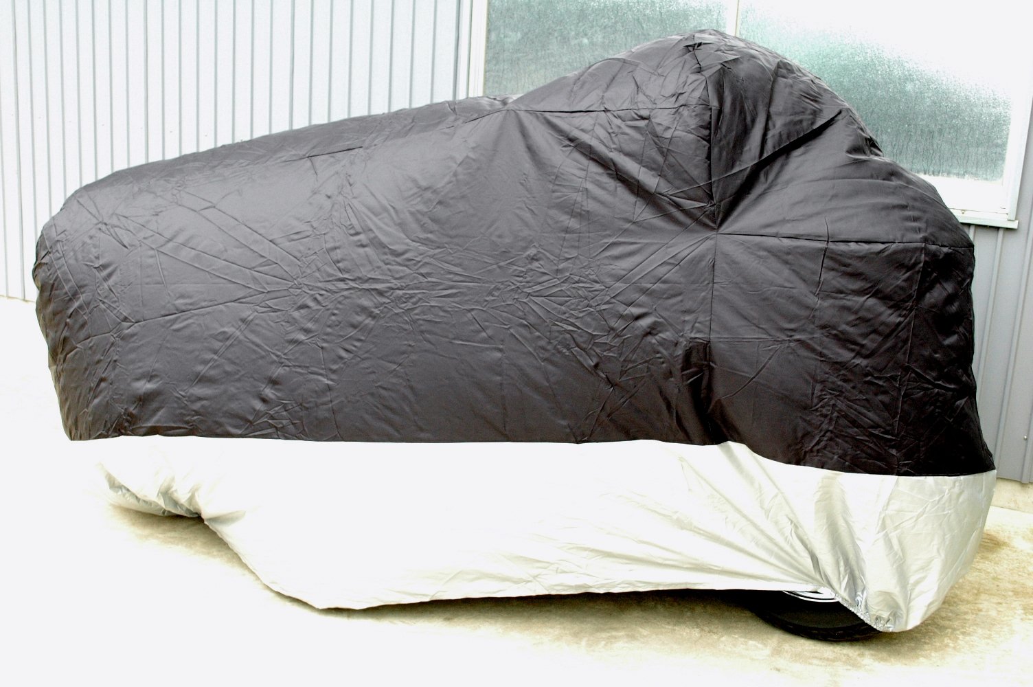 Installation reference photograph is a cover of XXXXL size and Harley FLSTC side bag with wide handle (width 90cm) vehicle was taken on a strong wind day.