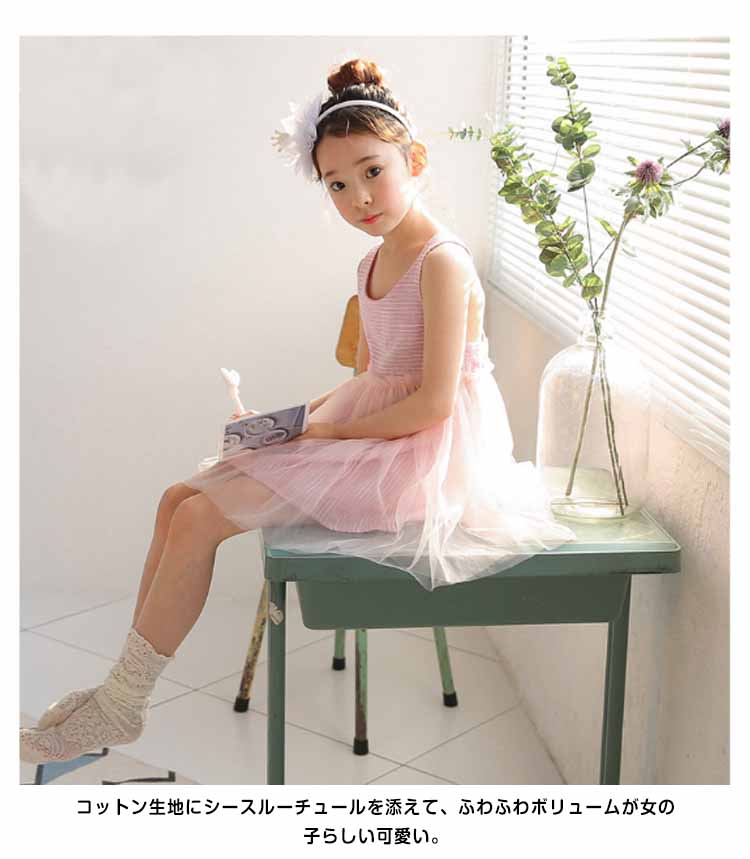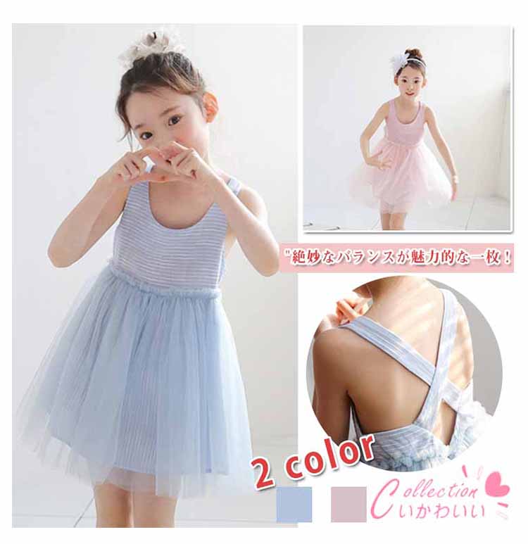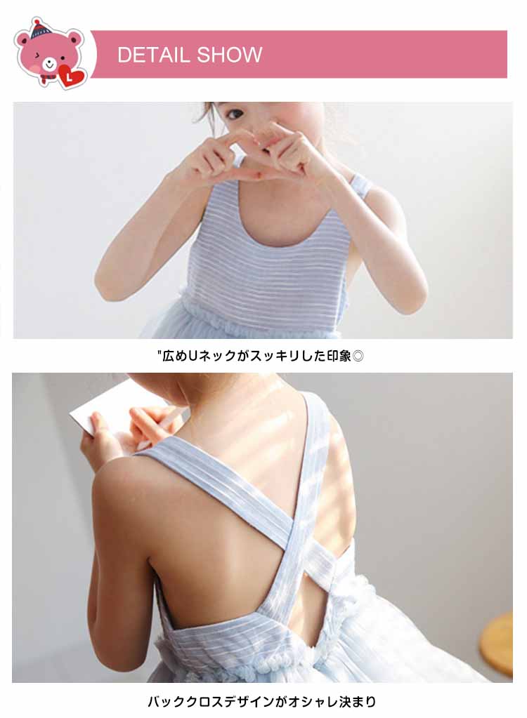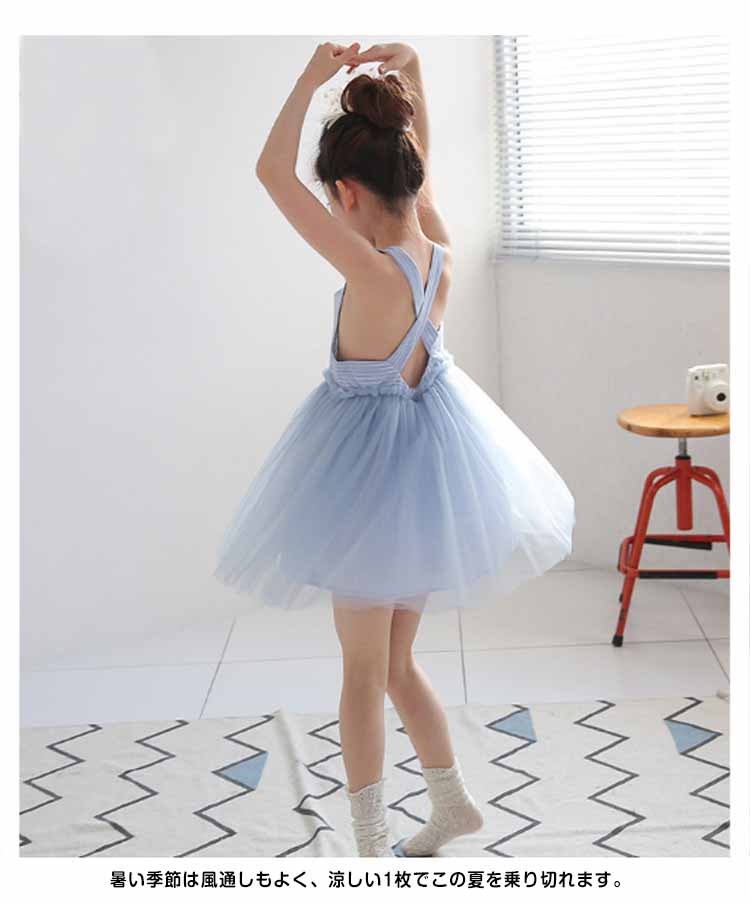 | 絶妙なバランスが魅力的な一枚!後ろクロスデザインがとっても新鮮で、大注目されるに間違いなし。暑い季節は風通しもよく、涼しい1枚でこの夏を乗り切れます。コットン生地にシースルーチュールを添えて、ふわふわボリュームが女の子らしい可愛い。デイリー使いは勿論、ダンス衣装としても◎ | |