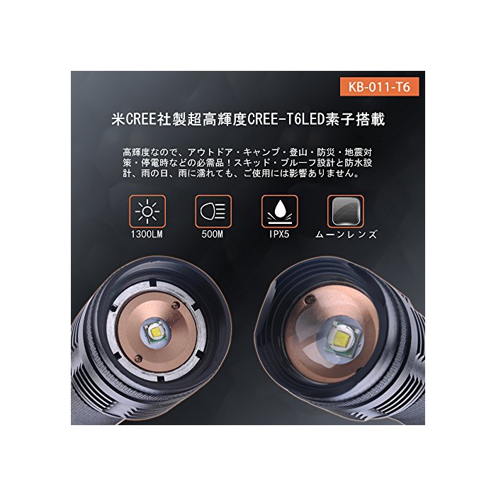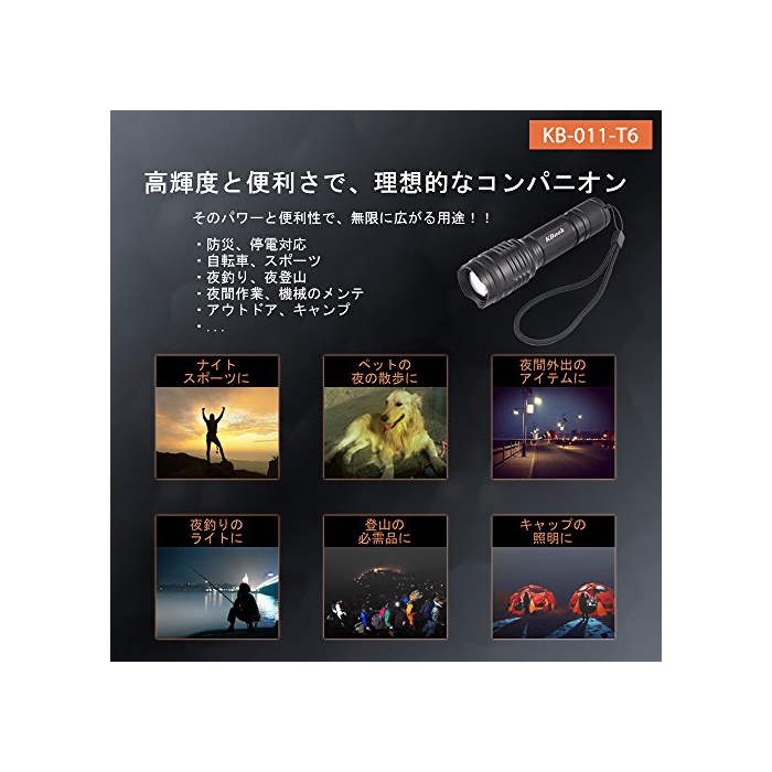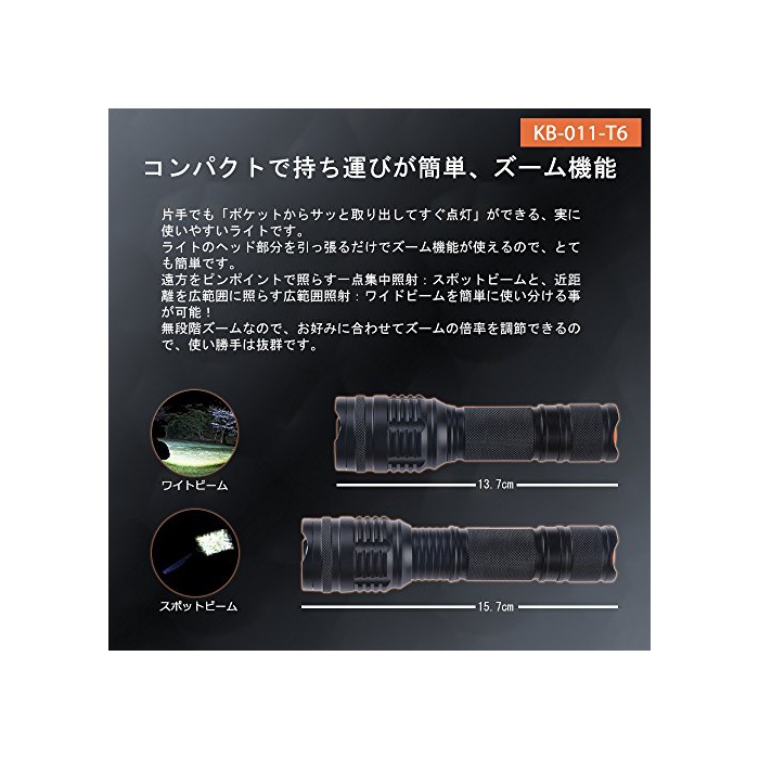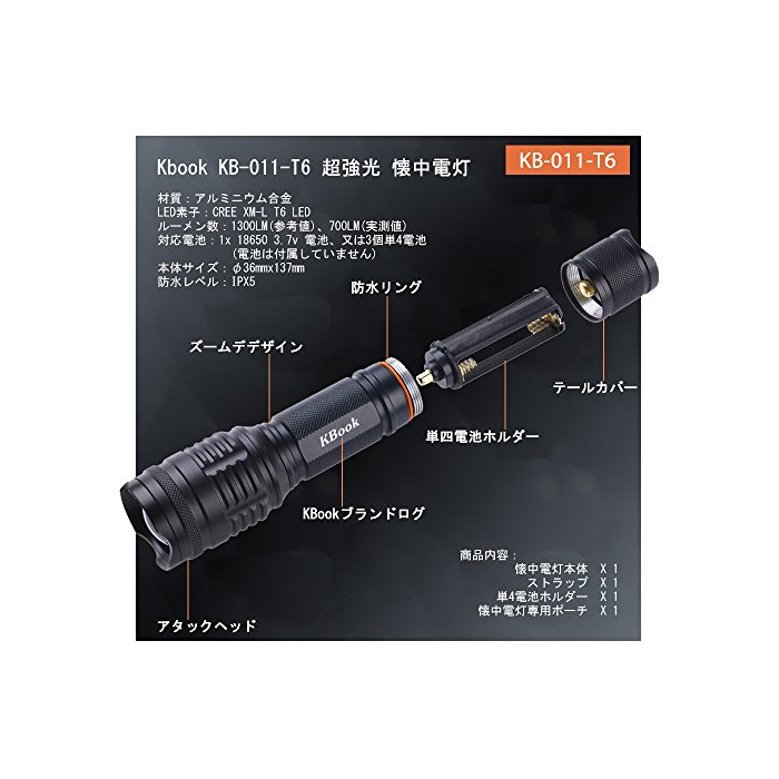 원본상품명: Kbook 超光 1300ルメン アルミニウム合金製 中電 KB-011-T6 用ポチ付