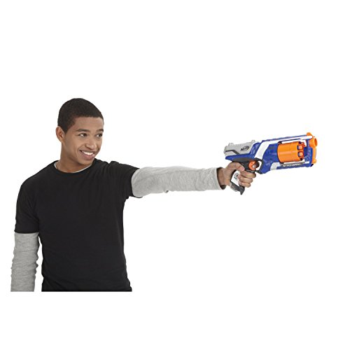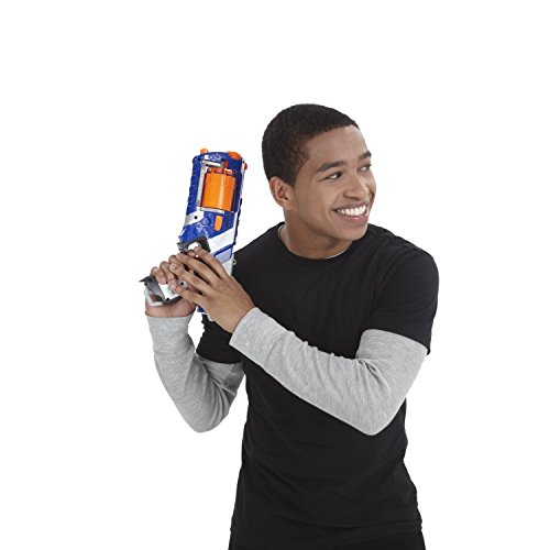 -. Binding : Toy -. Brand : Nerf -. EAN : 6897171095171 -. Feature : Strongarm blaster holds 6 Elite darts and fires darts up to 75 feet Slam Fire slide lets you rapid-fire all 6 included Elite darts Flip open the rotating barrel for easy loading Elite darts work with any Elite blaster and most N-Strike blasters (sold separately) Includes blaster, 6 Elite darts, and instructions Colors may vary / Refill Pack includes 75 N-Strike Elite darts Darts are compatible with any N-Strike Elite blaster and most original N-Strike blasters (sold separately) Includes 75 darts -. IsAdultProduct : 0 -. Label : Nerf -. Manufacturer : Nerf -. ProductGroup : Toy -. ProductTypeName : TOYS_AND_GAMES -. Publisher : Nerf -. Studio : Nerf -. Title : Bundle: Nerf N-Strike Elite: Strongarm Blaster (Colors may vary) & Nerf N-Strike Elite Dart Refill Pack (75 Darts)