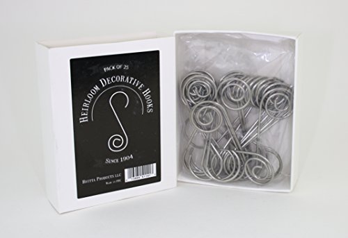 -. Binding : Kitchen -. Brand : Britta Products -. Color : Gold -. EAN : 0013964511413 -. Feature : Heavy duty decorative hooks. Generous 1" diameter for attaching to tree branches / Perfect for large Christmas ornaments, tree lighting or outdoor garden items / Stainless steel - will not rust or corrode / 3" length / 1" diameter. Decorative twist makes this a unique way to highlight items / Packaged as a set of twenty (20) hooks per set -. Label : Britta Products -. Manufacturer : Britta Products -. Model : DHook-20piece -. MPN : DHook-20piece -. PackageQuantity : 20 -. PartNumber : DHook-20piece -. ProductGroup : Home -. ProductTypeName : HOME -. Publisher : Britta Products -. Size : 3" -. Studio : Britta Products -. Title : Decorative Hooks - Christmas, Ornament, Outdoor - Stainless Steel, heavy duty. Set of 20 -. UPC : 013964511413