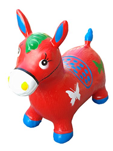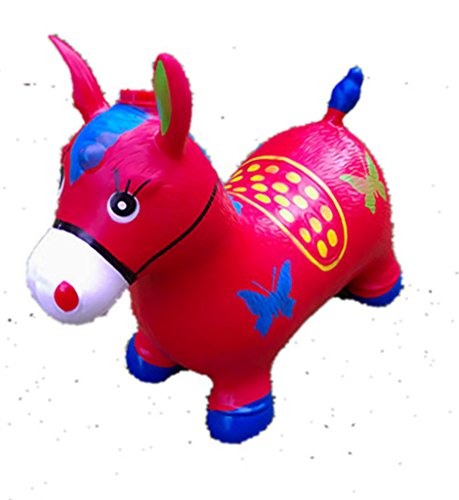 Red Bouncy Horse for Kids, L&H Kid's Inflatable Horse Hopper (Inflatable Space Hopper, Jumping Horse, Ride-on Bouncy Animal)