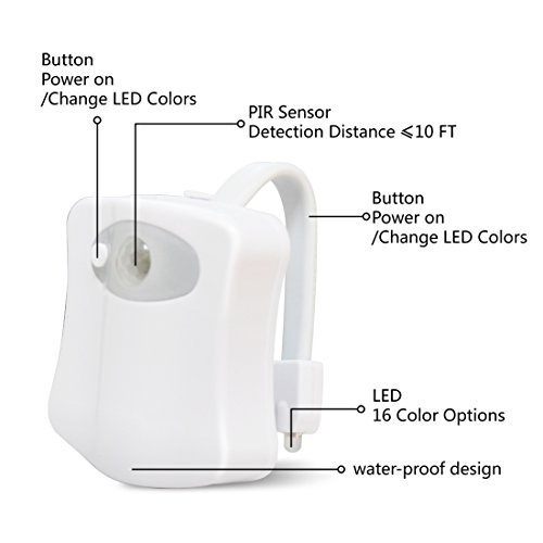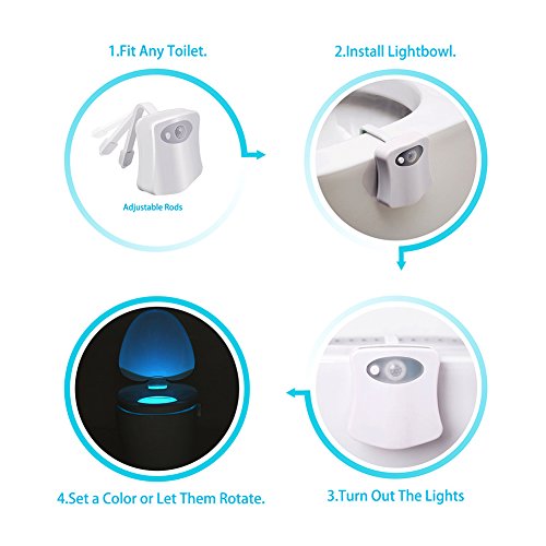 WEBSUN Toilet Night Lights Motion Activated, Sensor LED Toilet Seat Light - 16 Colors 2 Modes