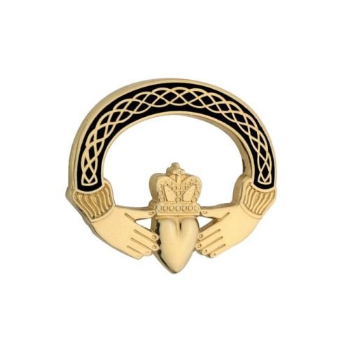 -. Title : Claddagh Brooch Gold Plated & Black Made in Ireland