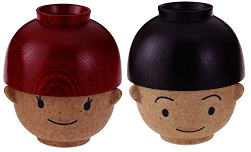 Set includes a wood miso soup bowl (head/hat) and a ceramic rice bowl (face)
