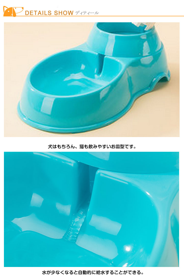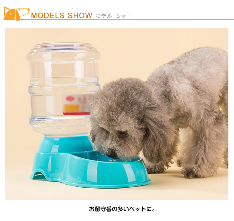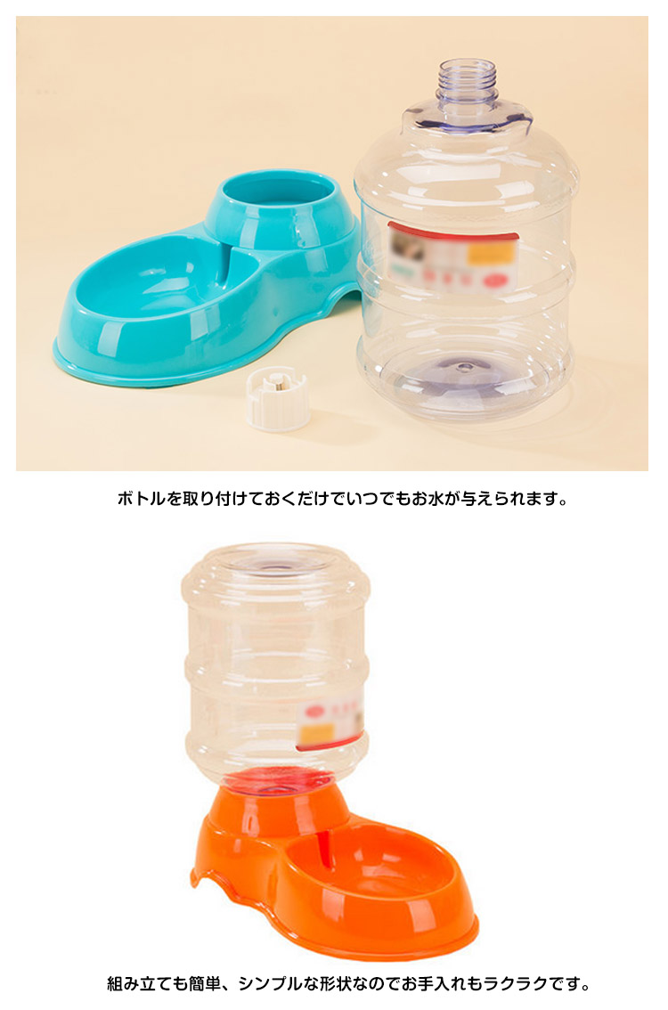 | お留守番の多いペットに。自動で給水してくれる!ボトルを取り付けておくだけでいつでもお水が与えられます。組み立ても簡単、シンプルな形状なのでお手入れもラクラクです。 | |