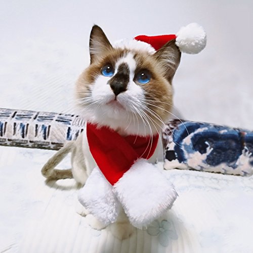 -. Title : Pet Christmas Costumes Santa Hat with Scarf for Cats and Small Dogs Holiday Accessory New Year Dressing up Party Fancy Dress Clothes