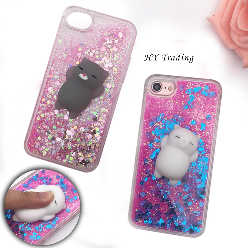 フワフワ電話ケースiphone用5 sケース3d漫画猫ブリンブリングリッター液体流砂クリアカバーのためiphone x 6 6 s 7 8プラスケース