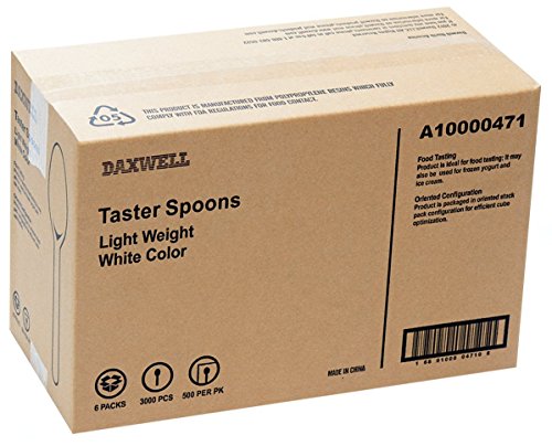Daxwell Light Weight Polypropylene Taster Spoon, 3.25", White (6 Bags of 500)