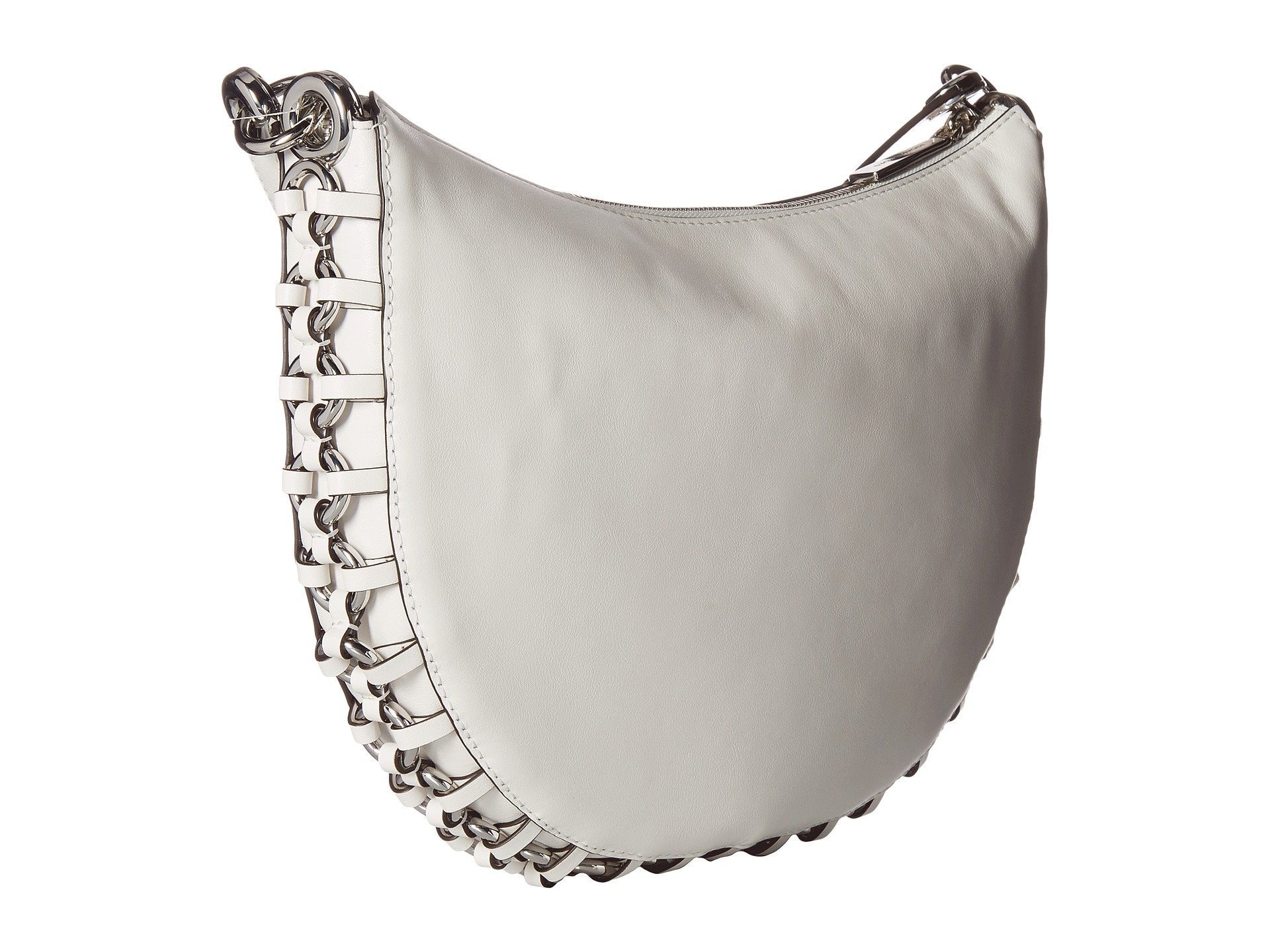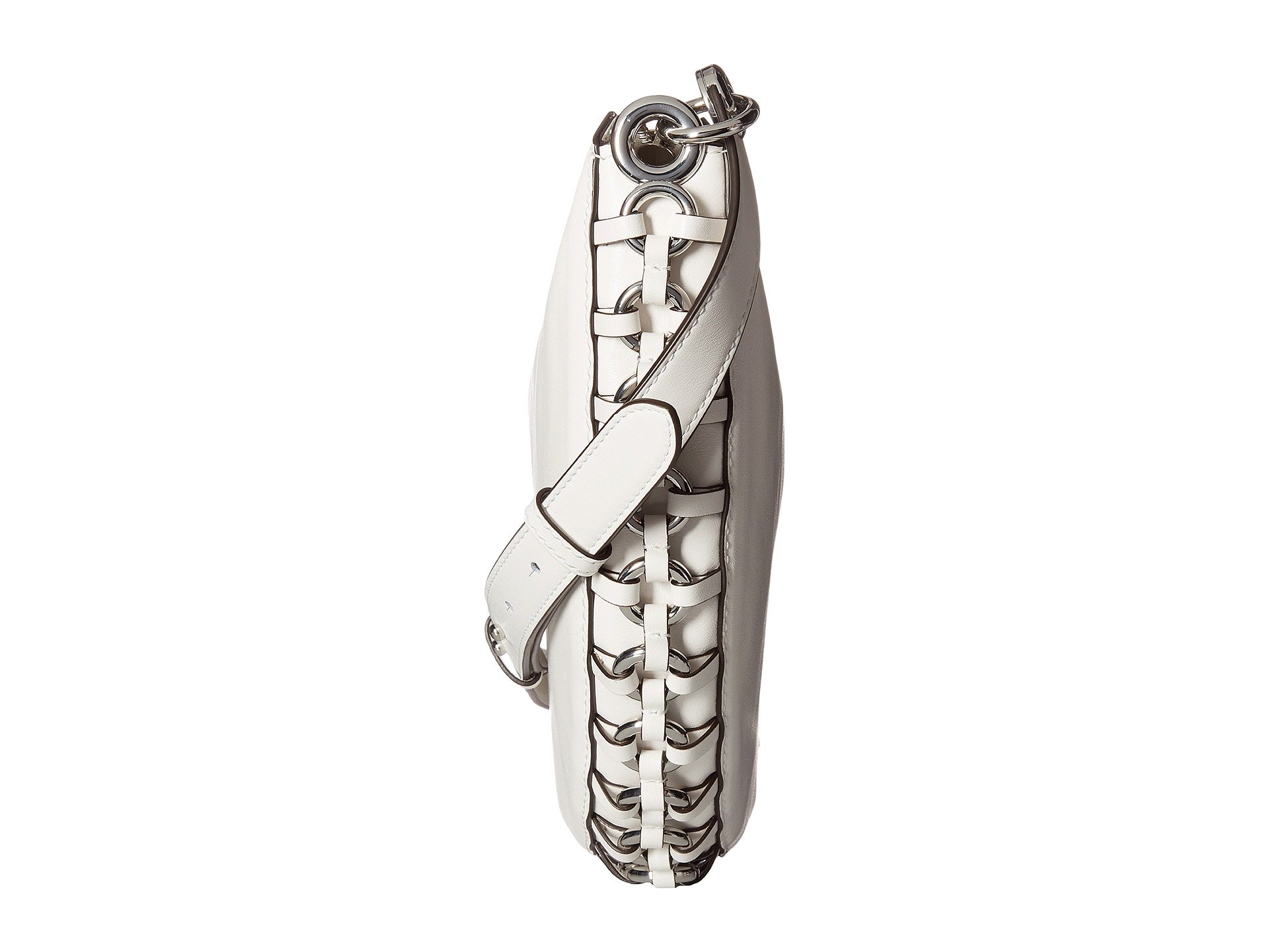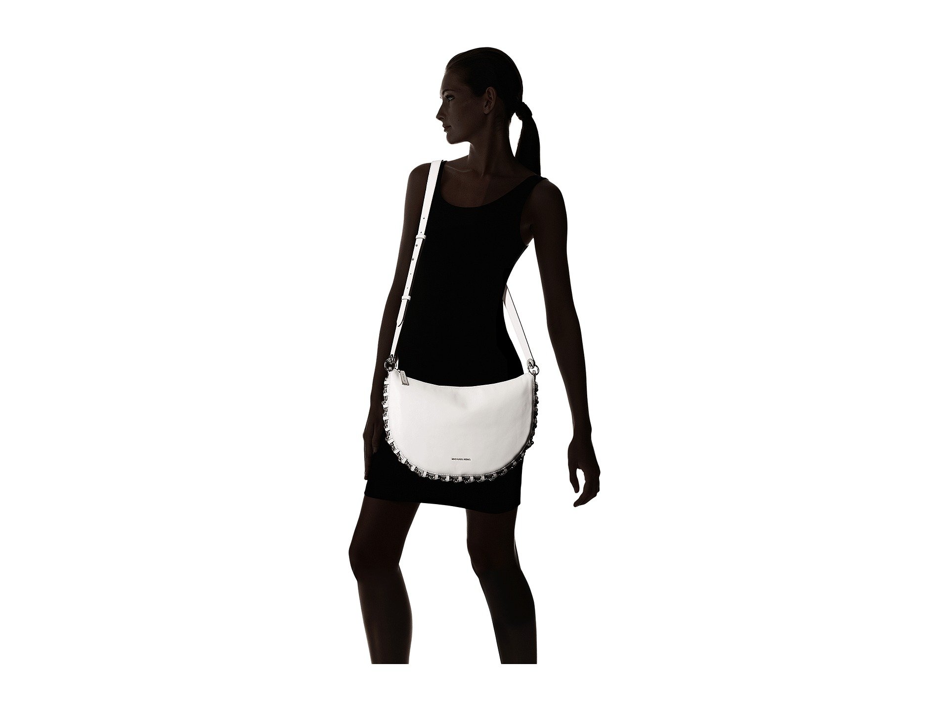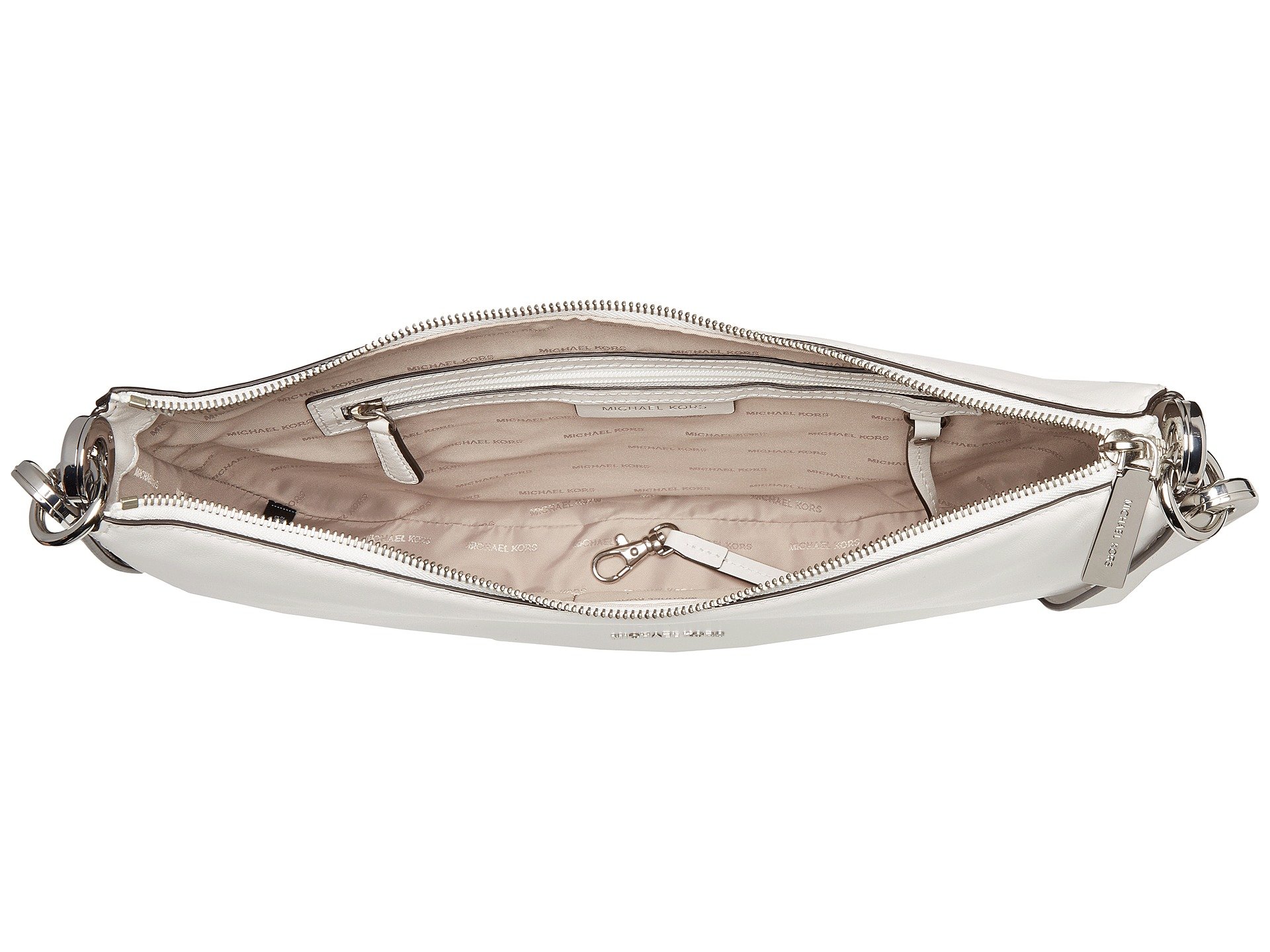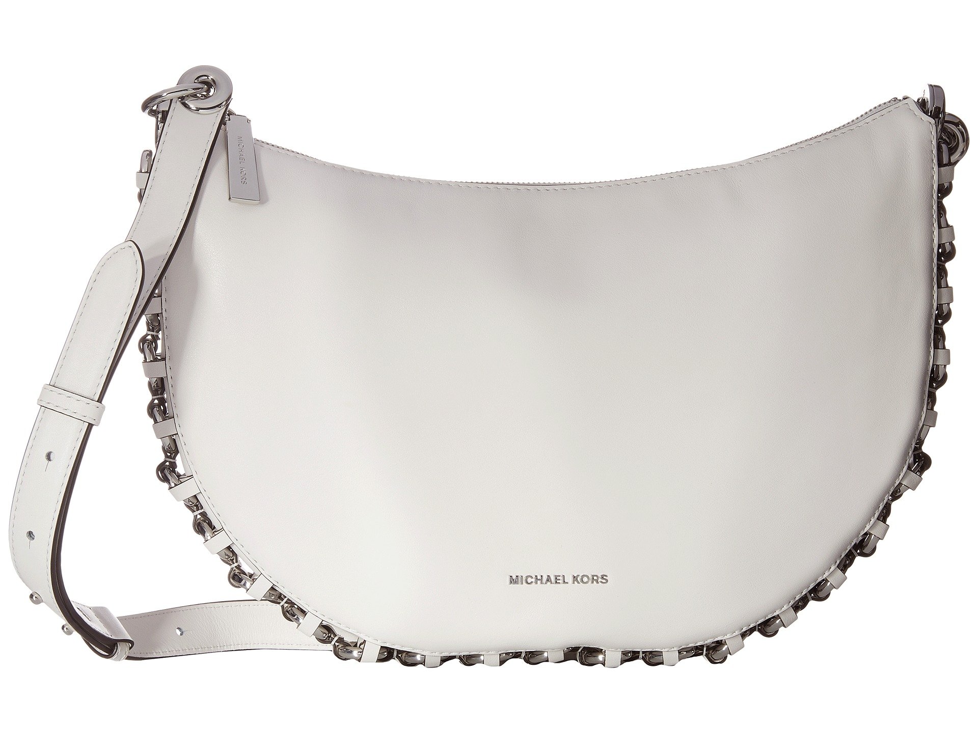 | Product Information SKU: #8899436The MICHAEL Michael Kors? Piper Medium Messenger is feisty and fun, you need her in your collection! Made of smooth leather with tonal stitching.Top zip closure.Adjustable leather shoulder strap.Metal and leather link chain along sides and bottom.Signature brand name hardware detail in front.Lined interior features one zip pocket, one slip pocket, and a key clasp.Imported.This product may have a manufacturer's warranty. Please visit the manufacturer's website or contact us at warranty@support.zappos.com for full manufacturer warranty details.Please note, the hardware color and interior lining may differ from the color shown in the photo.Measurements: Bottom Width: 13 in Depth: 1 3?4 in Height: 8 1?2 in Strap Length: 42 in Strap Drop: 21 in Weight: 1 lb 6 oz |