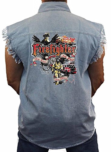 (Juiceclouds)/Men/Outerwear/DIRECT FROM USA/Firefighter Denim Ves t Any Time Any Place Any Where Mens Sleeveless Biker Wear M-5XL