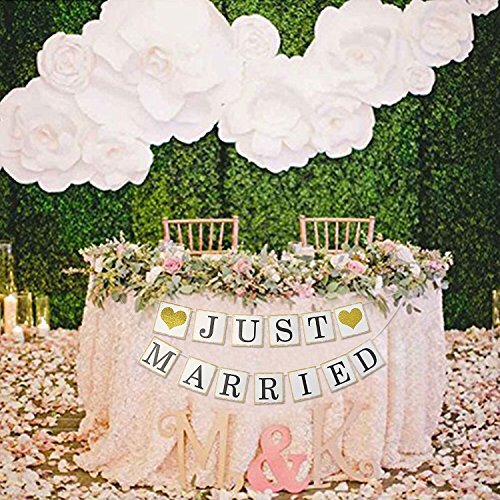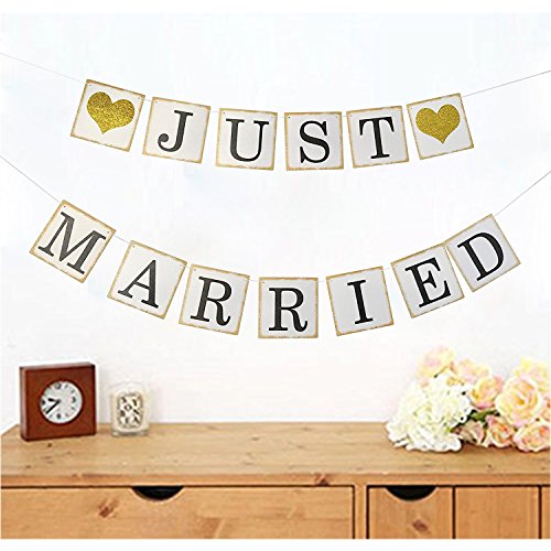 -. Title : Just Married Banner Gold Glitter Sign Garland for Wedding Bridal Shower Bachelorette Party Decorations Photo Props