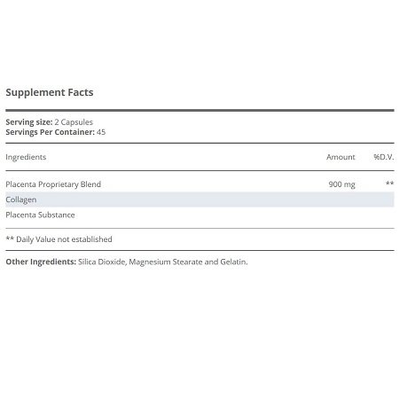 Swiss Placenta from Switzerland is made of fresh, pollution-free Sheep Placenta. Sheep placenta is a rich source of nutrients, growth factors and bio-active cytokines. It has a wide range of health benefits including enhancing body energy, skin complexion and stopping the aging process. Recent scientific research has shown placenta contains rich growth factors, hormones and antibodies, and other concentrated nutrients that can rejuvenate organic tissue. Suggested Use: Take one or two capsules every morning. Please note: these statements have not been evaluated by the FDA. This product is not intended to diagnose, treat, cure or prevent any disease. This product cannot replace your doctor's prescription medicine.Feature