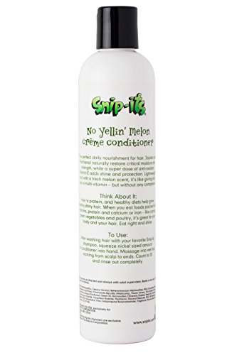 No Yellin' Melon Crème Conditioner is the perfect daily nourishment for hair. Ingredients like Jojoba and Panthenol, naturally restore critical moisture and strength, while a super dose of anti-oxidant Vitamin-E adds shine and protection. Lightweight and with a fresh melon scent, it's like giving kids' hair a multi-vitamin - but without any complaints. •HAIRCARE FOR KIDS - Snip-its Haircuts for Kids® is an innovative hair care and branded entertainment concept designed specifically for kids. With its colorful salons, custom animated characters, interactive games, and private label salon-quality, kid-friendly haircare products, Snip-its® offers a fun-filled adventure to untangle the haircare challenges of children without artificial or synthetic additives.