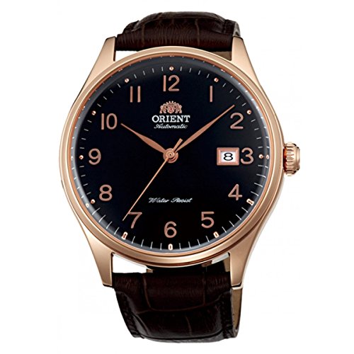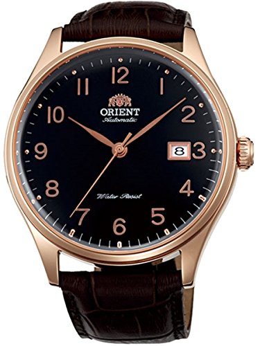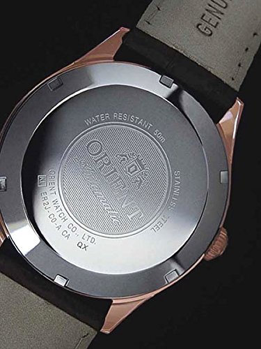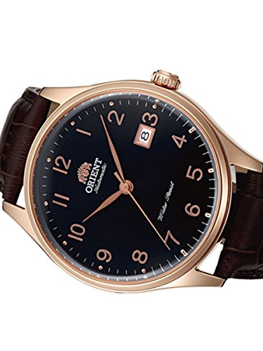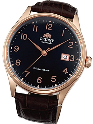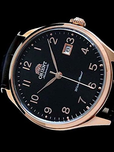 Studio : Orient Publisher : Orient Binding : Watch Product Description The new Orient Duke watch features an Orient made 21-jewel automatic movement, a black dial with polished rose goldtone Arabic numerals as hour markers and hash marks on the outer seconds track. Above each hour number is a round metallic pip, something that has not been seen in an Orient design until now. Includes a solid screw-in case back, date window at 3:00, a sapphire crystal, and a black leather strap. Great watch for casual or dress. The case is 43mm x 12.2mm. To wind the watch simply move it back and forth in an arc fashion 20 times or so. The motion of your wrist will keep it wound. It has up to a 40 hour power reserve when fully wound. Features Movement: Orient 21-jewel Automatic (self winding) Case: Rose Goldtone, 43mm x 12.2mm thick Back: Solid screw-in back Crystal: Sapphire Band: Black leather strap, buckle closure, 22mm. Water Resistant: 50 meters Warranty: 1 Year 0
