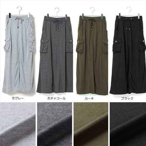 生地の程よい落ち感ですっきり美シルエット!!ワークテイストのデザイン性ある脇のポケットがポイントです。カットソー生地なのでストレスなくはき心地もよく春夏秋冬長いシーズン活躍まちがいナシです。ウエストもゴム仕様で履きやすく、スピンドルもついているのでサイズ調整も簡単!【サイズ】画像参照【素材】画像参照