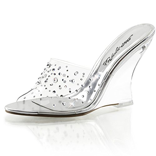 Product Description Check out these womens wedge sandals. They have a 4 inch wedge and rhinestones studded on the clear strap.0