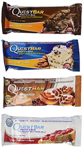 - Title : Quest Variety Pack, Cinnamon Roll, Vanilla Almond Crunch, Peanut Butter and Jelly, and Chocolate Brownie, 12 Protein Bars