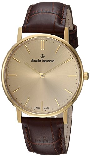 -. Title : Claude Bernard Men's 'Classic Gents' Swiss Quartz Stainless Steel and Leather Dress Watch, Color:Brown (Model: 20214 37J DI)