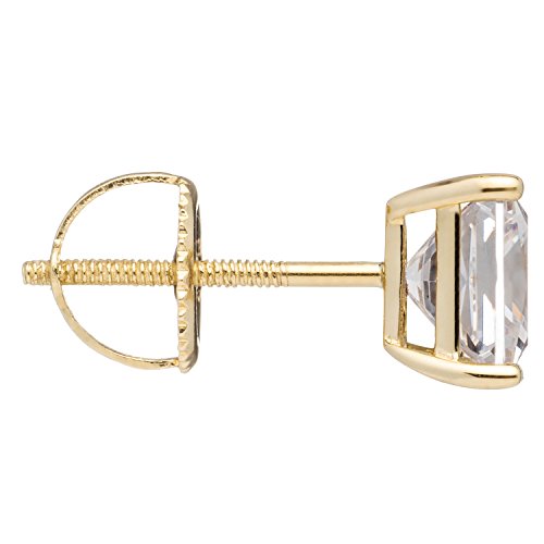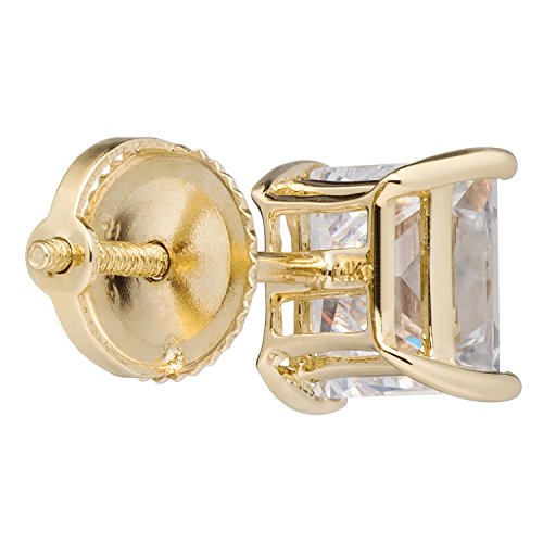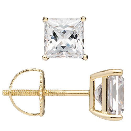 -. Title : 14K Solid Gold P.R.Incess Cut Cubic Zirconia Stud Earrings, Screw Back Posts (3.0 ctw), Gift Box