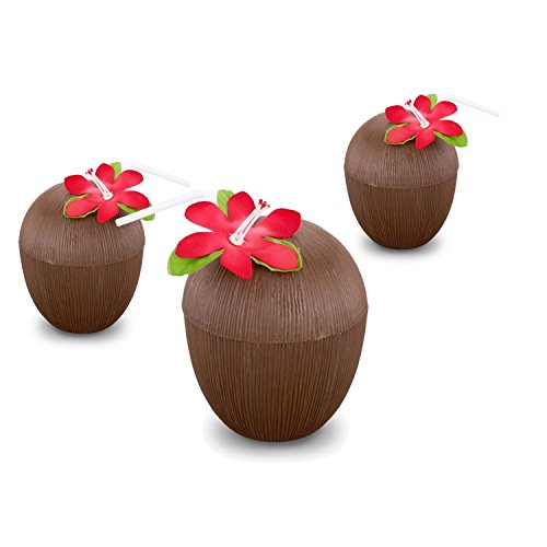 Plastic Coconut Cups For Fun Hawaiian Luau Children's Parties - Bulk 12 Pack - Comes With Straw And Flower - Tiki And Beach Theme Party Supplies (1 Dozen) TROPICAL VIBES: Our brown coconut plastic cups are great for Hawaiian themed parties and events and go great with luau themed gatherings. Who doesn't love the laid back island lifestyle? Regardless of where you're located, now you can bring the beach to you, starting with our 16oz themed coconut cups. Don't forget that they also come with a decorative fake flower colored straw with each drink holder KIDS LOVE THEM: The vibrant and colorful straws and flowers that are included with each drink holder lighten up the atmosphere and would be great for holding a drink like some coconut water, pineapple juice, fruity mixed drinks, or maybe something stronger for the supervising adults, like e painkiller, caribbean rum punch, frozen rum runner, bahama mama, mojity, banana daquiri, or even a delicious mai tai REUSABLE COCONUT CUPS: These party props will take your luau or tiki party to the next level. Throw on a pair of swim trunks, grab the sunscreen, blow up the portable swimming pool or the slip n slide and get that hose out. If you're looking for wet and wild fun in the sun, no gathering is complete without these beach and ocean themed cups. The best part: when you're done using them, throw the dishwasher safe plastic cups in the dish washer and save them for future use 0 |