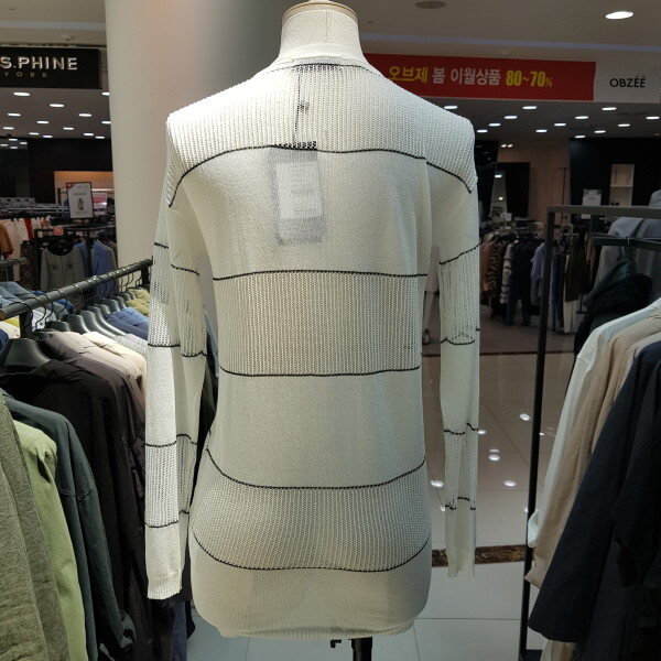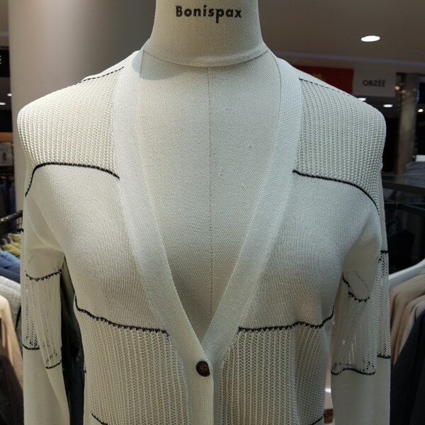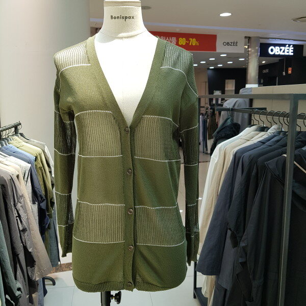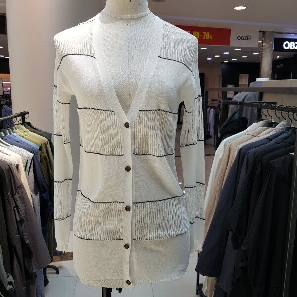 슬림해 보이는 긴팔 짜임 가디건 입니다.스트라이프 무늬가 포인트로 들어가 시원해보이는 가디건입니다.
