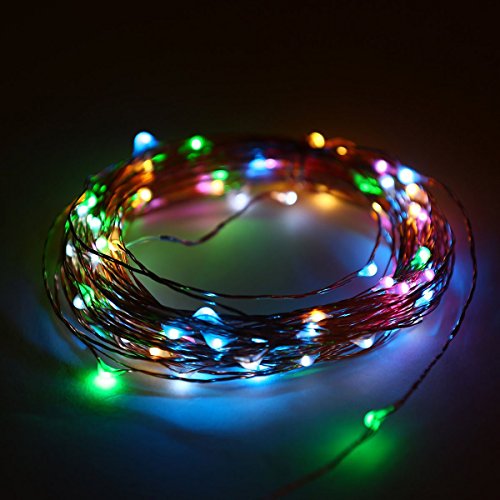 Eastchina | Multi-color 10m/33ft 100 Leds Copper Wire LED Starry Light | LED Copper Wire Lights | LED String Lights | with 12v Adapter | with LED Mini Dimmer