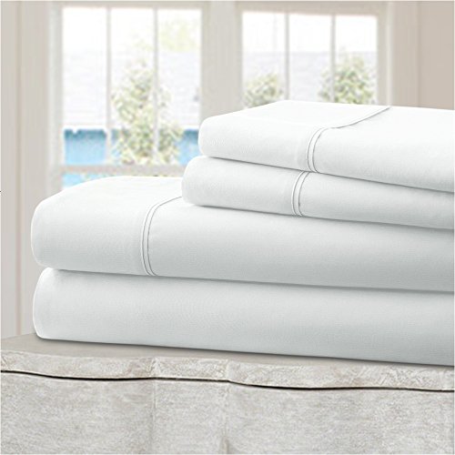Mellanni 100% Cotton Bed Sheet Set - 300 Thread Count Percale - Deep Pocket - Quality Luxury Bedding - 4 Piece (Full, White)