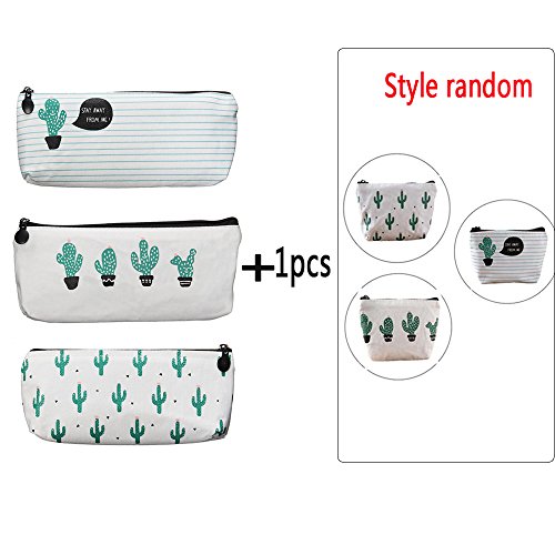 BinaryABC Cactus Canvas Pencil Case Boxes, Makeup Bags Coin Bags,4 Pack