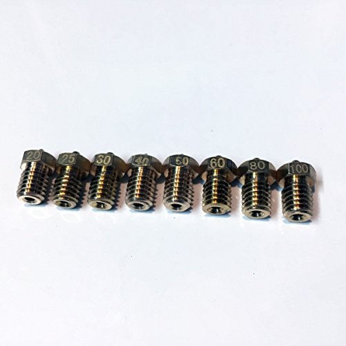 REPKORD 3D Printer Nozzle Kit E3D Compatible M6 Thread Set 0.2mm, 0.25mm, 0.3mm, 0.4mm, 0.5mm, 0.6mm, 0.8mm, 1mm (Pack of 8)