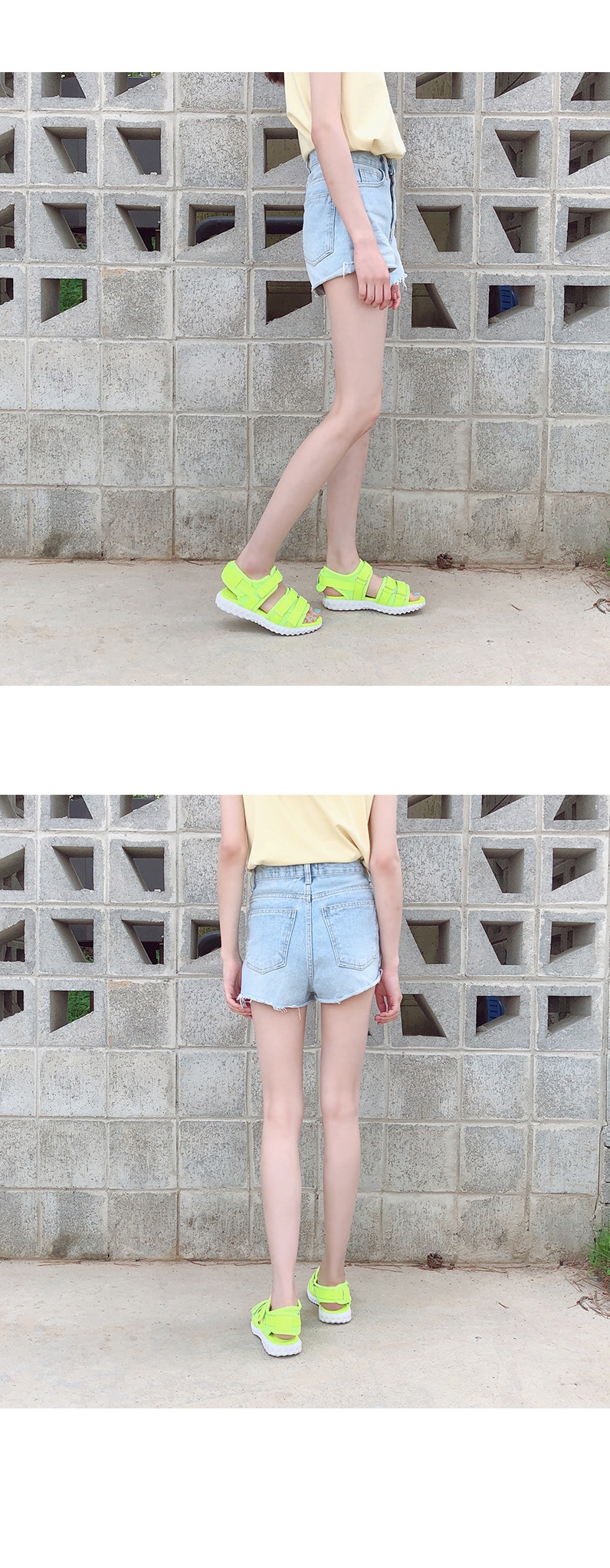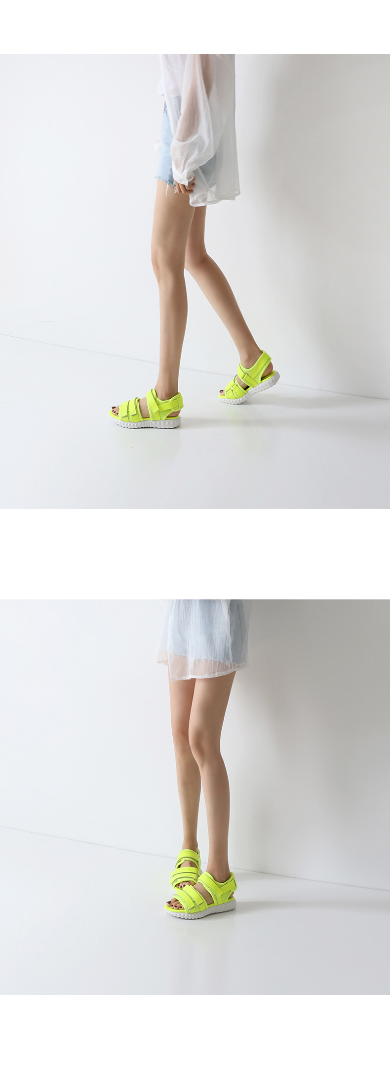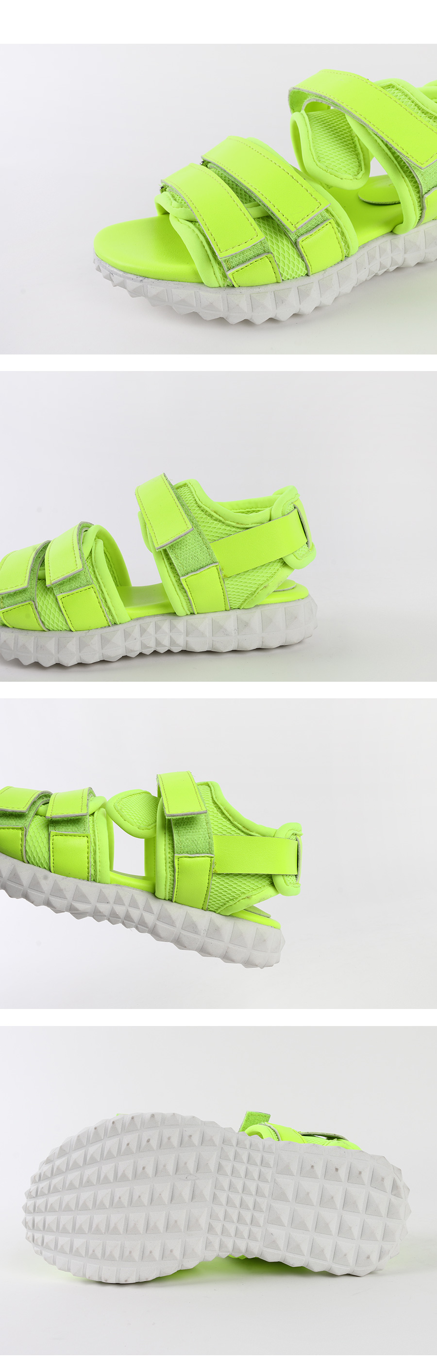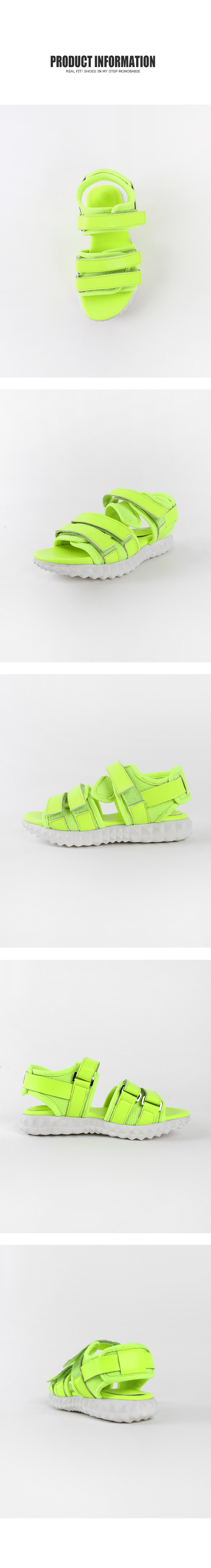 그린형광컬러가 톡톡튀는 제품으로 발등과 벨목은 벨크로로 조절되는 제품입니다.