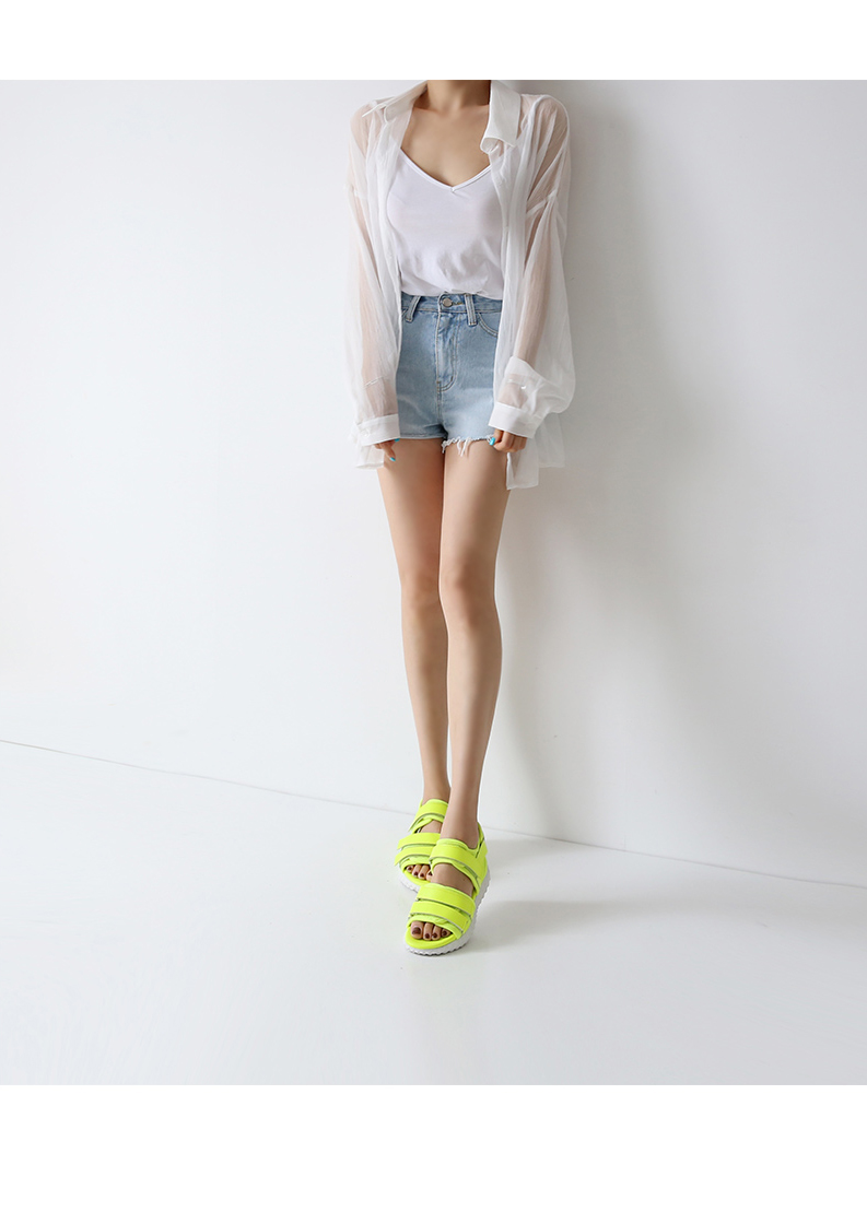 DETAILS - 소재 : 인조소가죽 메쉬 - 컬러 : neon - 피팅감 : 정사이즈 / 무게 : 보통인편 - 착화감 : 쿠션바닥창으로 편안해요 - 모델피팅 : 230 - 발등 찍찍이 밴드조절