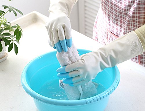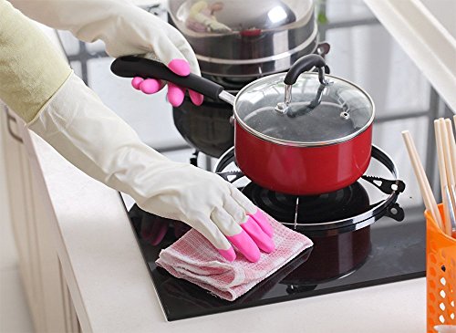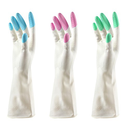 Brighome 3 Pair Waterproof Rubber Latex Cleaning Gloves for Kitchen Dish Washing Laundry Cleaning (Style 1)