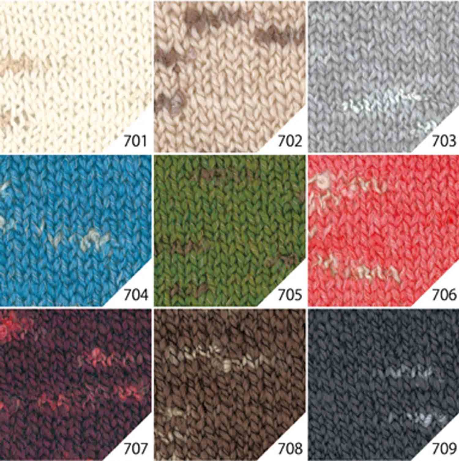 A fun semi-fancy yarn in which a knot like a whip comes out in a different color to a wave-like top melange thread.
