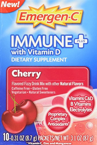 -. Title : Emergen-C Immune+ (10 Count, Cherry Flavor) System Support Dietary Supplement Drink Mix With Vitamin D, 1000mg Vitamin C, 0.31 Ounce Packets