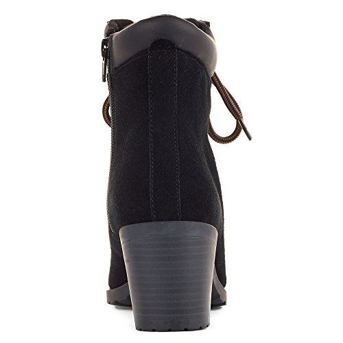 Product DescriptionSpruce up your look with the waterproof Angie Ankle Boot. Showing off a chunky heel and an anti slip outsole. Includes 2nd pair of black laces. Lace up closure Removable memory foam insole Anti slip outsole PVC free.0
