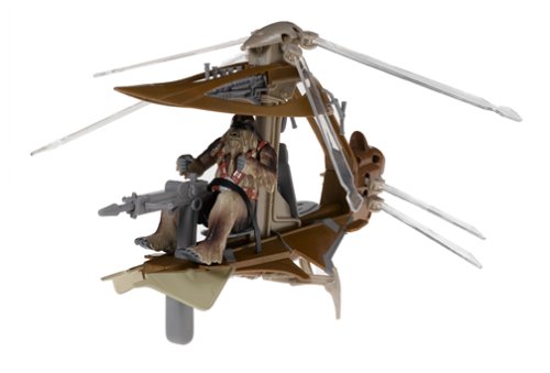 -. Binding : Toy -. Brand : Hasbro -. EAN : 0653569055051 -. Feature : Hasbro continues the Star Wars adventure with this line of action figures for the final film Star Wars Episode 3: Revenge of the Sith / Wookiee warriors use their special helicopters in battle to attack the enemy from above / Swift and highly maneuverable, the helicopters swoop down to launch a powerful assault on invading ground forces / Squeeze the trigger for blade-flapping flying action / Action vehicle features real flapping wings for flying action, firing cannon and comes with Wookiee Warrior figure -. Label : Hasbro -. Manufacturer : Hasbro -. Model : 85637 -. MPN : GC-QTGQ-VEK3 -. PartNumber : GC-QTGQ-VEK3 -. ProductGroup : Toy -. ProductTypeName : TOYS_AND_GAMES -. Publisher : Hasbro -. ReleaseDate : 2006-06-12 -. Studio : Hasbro -. Title : Star Wars Episode 3 Wookie Helicopter With Wookie -. UPC : 653569055051