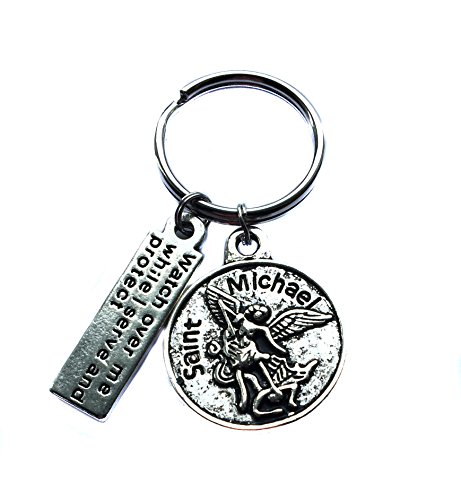 Product Description Keychain made with a 29mm x 24mm antique silver double sided Saint Michael, Serve and Protect Police Officer charm, and a 30mm x 8mm antique silver "Watch over me while I serve and protect." Makes a thoughtful gift for any police officer. 0