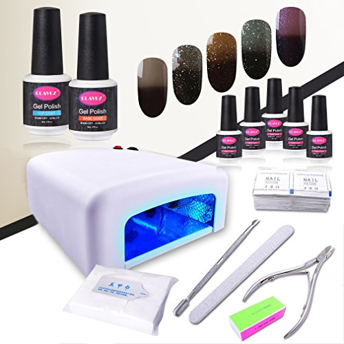 ♥Included:? ♥5 x Color Selected Gel Polish ♥1 x Top Coat ♥1 x Base Coat? ♥1 x 36W White UV Nail Lamp ♥1 x Nail Cuticle Pusher ♥1 x Nail Cutter Clipper ♥1 x Nail Sanding File ♥1 x 4-way buffer block ♥1 x 200pcs Nail cotton pad? ♥1 x 50pcs remover wrap