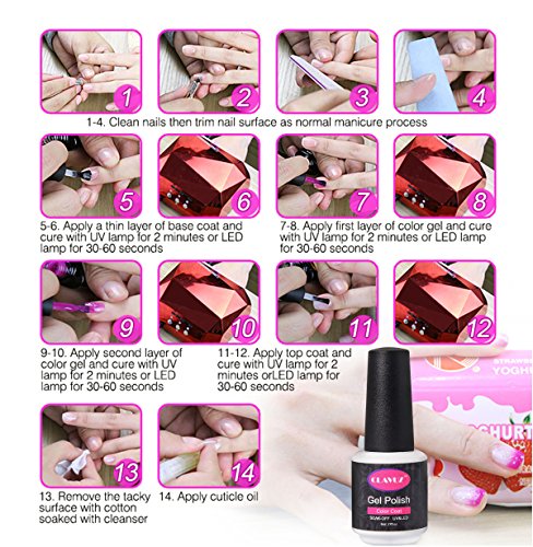 Warm Tips:The actual colors may be slightly different from the picture because of the lighting and computer color ? ? ? ? ? ? Professional Usage: STEP 1 : Gently buffer your nail surface so they're not shiny and smooth STEP 2 : Apply base coat - cure with LED or UV nail dryer lamp STEP 3 : Apply 1st thin coat of polish - cure STEP 4 : Apply 2nd thin coat of polish - cure. --Apply 3rd coat if necessary STEP 5 : Apply top coat - cure STEP 6 : Enjoy your Manicure last for 2~3 weeks ? ? ? ? ?Professional Remove: STEP 1:Soak off the nails into Gel remover for about 5 minutes STEP 2.:Rip down the whole piece of nail enamel gently on each nail 0 |