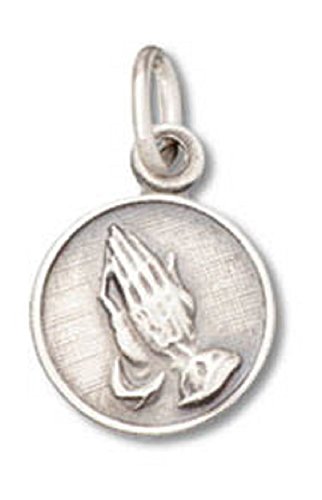 -. Title : Sterling Silver Girls .8mm Box Chain Tiny Round Medallion Praying Hands Religious Pendant Necklace