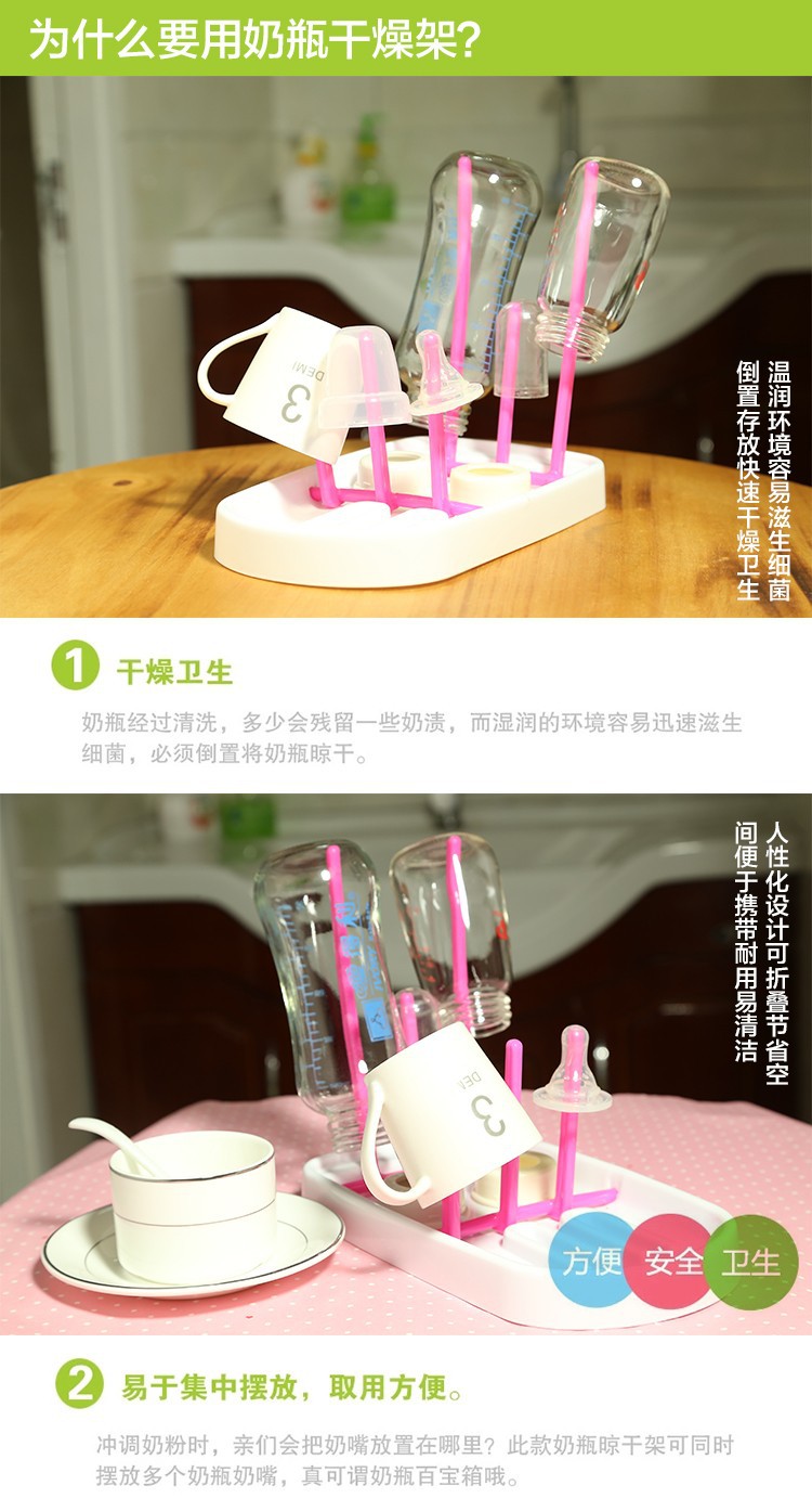 Safe antibacterial,drying rack can prevent the dumping of bottles.