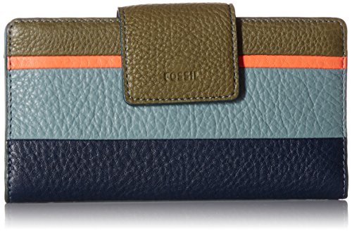 -. Title : Fossil Emma Rfid Tab Clutch Navy Multi Stripe Wallet