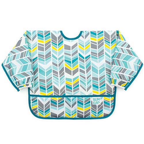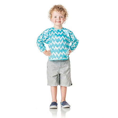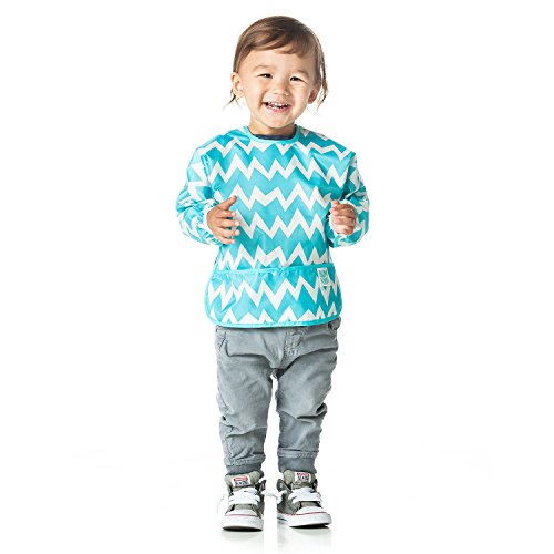 Bumkins Waterproof Sleeved Bib, Blue Chevron (6-24 Months)